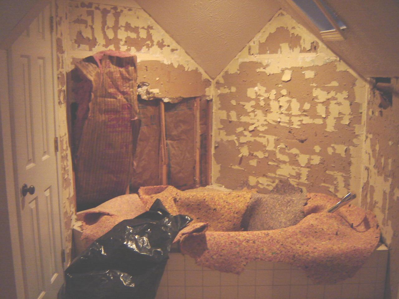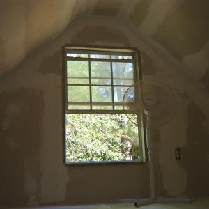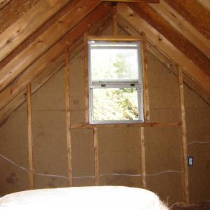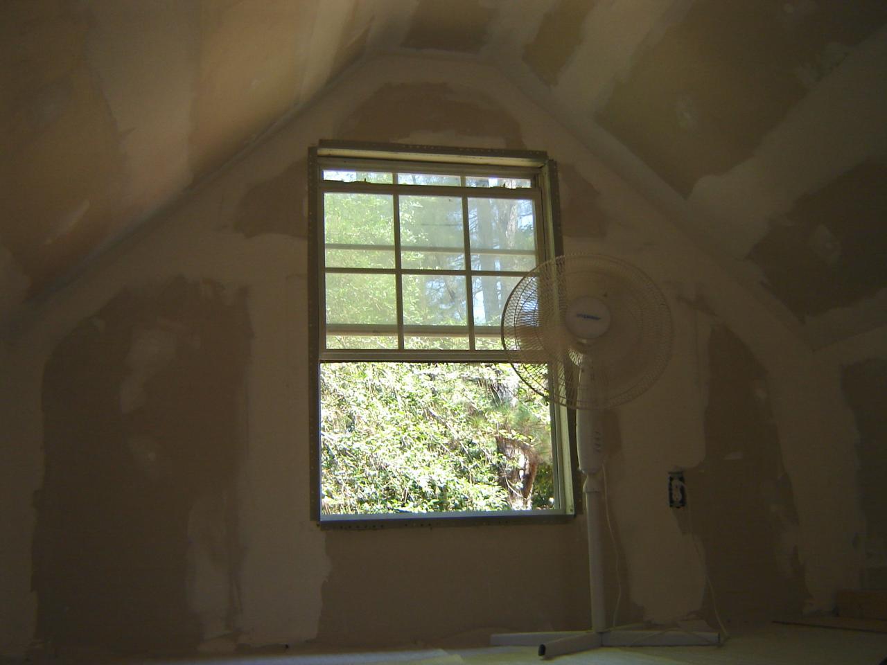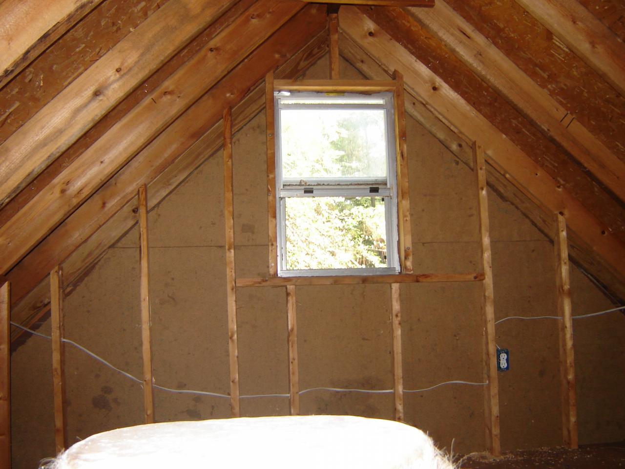 The "Before" image shows unfinished attic walls. The "After" image shows attic walls finished with gympsum board and larger window installed for better ventilation and lighting.