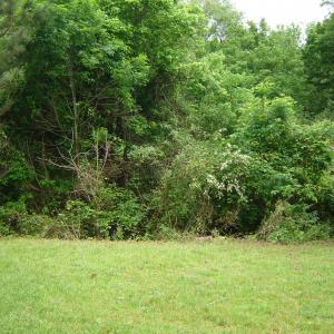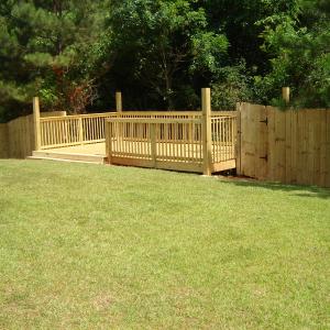 The "Before" image shows the wooded area covering the hill that is cleared prior to constructing the new deck. The "After" image shows the 32' x 16' deck constructed to overhang the hill that was once covered with woods and weeds.